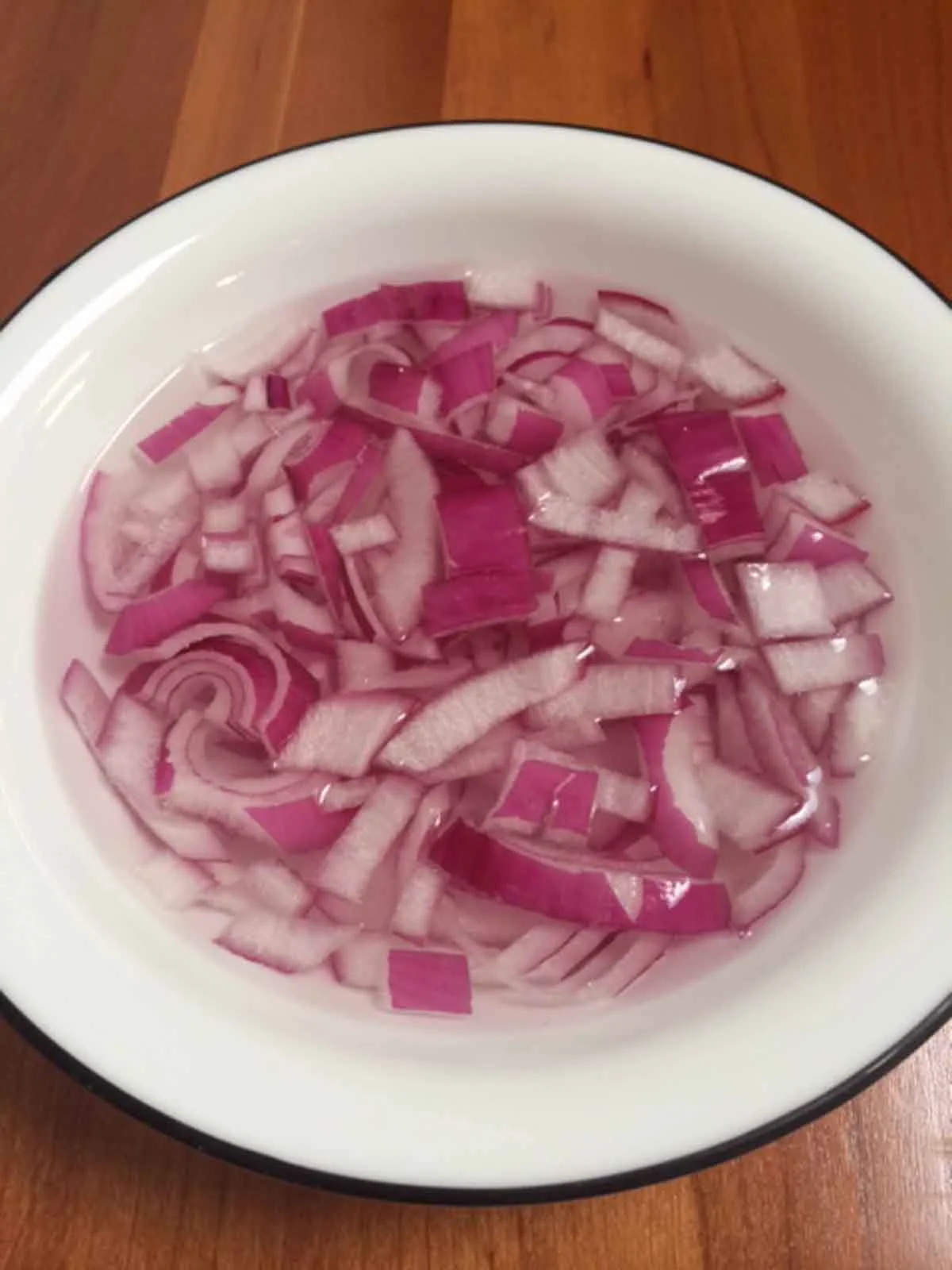 Red onion may get your blood pumping but it also likes to bite, hard. Tame that bite into a nibble by soaking your diced onion in icy water while you prep the rest of your salad.